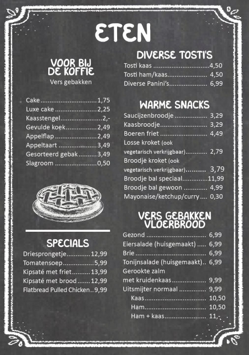 U heeft keuze uit diverse soorten dranken, warme broodjes, verse broodjes en diverse koude en warme snacks. Neem een kijkje in het restaurant voor het meest recente menu.