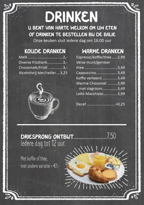 Kom genieten van een heerlijk ontbijt bij de Driesprong, iedere dag beschikbaar tot 12 uur!